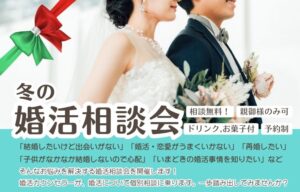 「婚活相談会」を開催します。 世の中がクリスマス一色になる12月末ですが、ユニマリアージュでは、婚活者のお悩みを解きほぐす、そんな相談会を行いたいと思います。 1年の締めくくりに、思い切って、相談にいらしてみてください。 … 続きを読む 「冬の婚活相談会(無料)」開催します